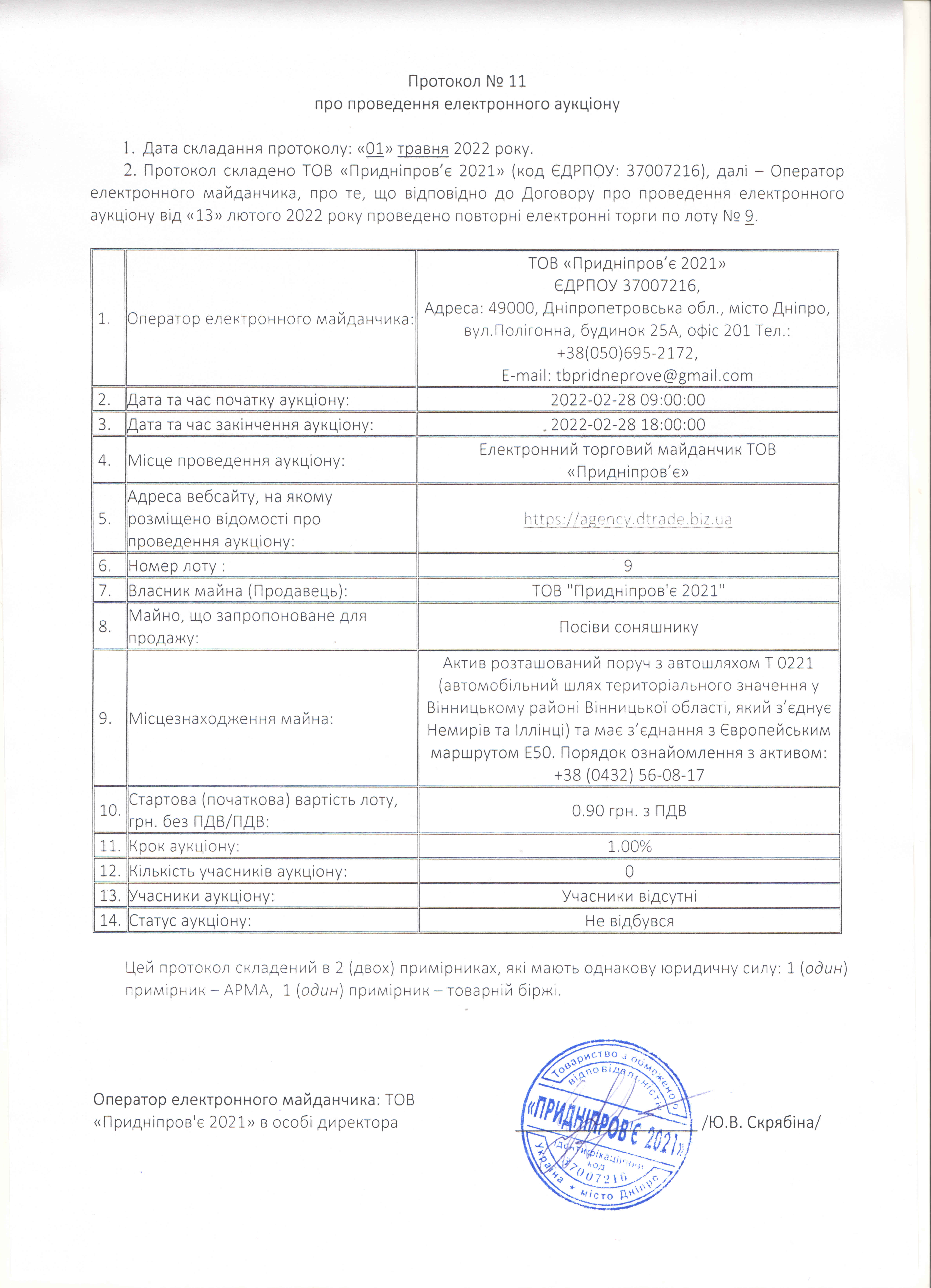 Проект договору Перший повторнимй аукціон з продажу майна "Посіви соняшнику" #9